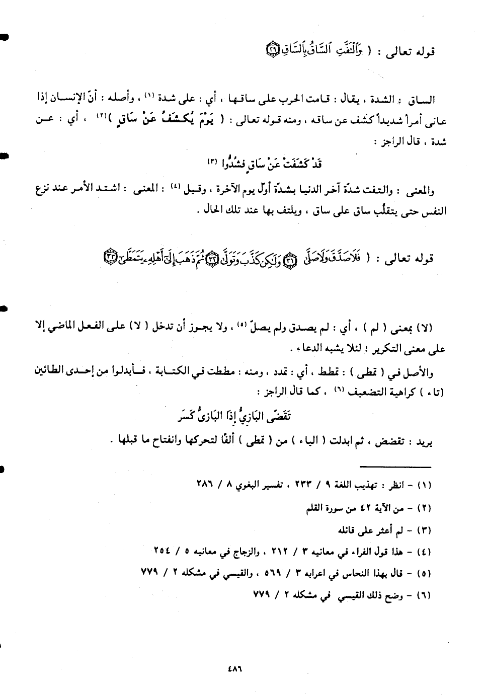 قوله تعالى: (وَالْتَفَّتِ السَّاقُ بِالسَّاقِ (29))
