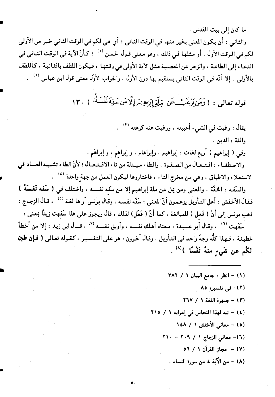قوله تعالى: (وَمَنْ يَرْغَبُ عَنْ مِلَّةِ إِبْرَاهِيمَ إِلَّا مَنْ سَفِهَ نَفْسَهُ)
