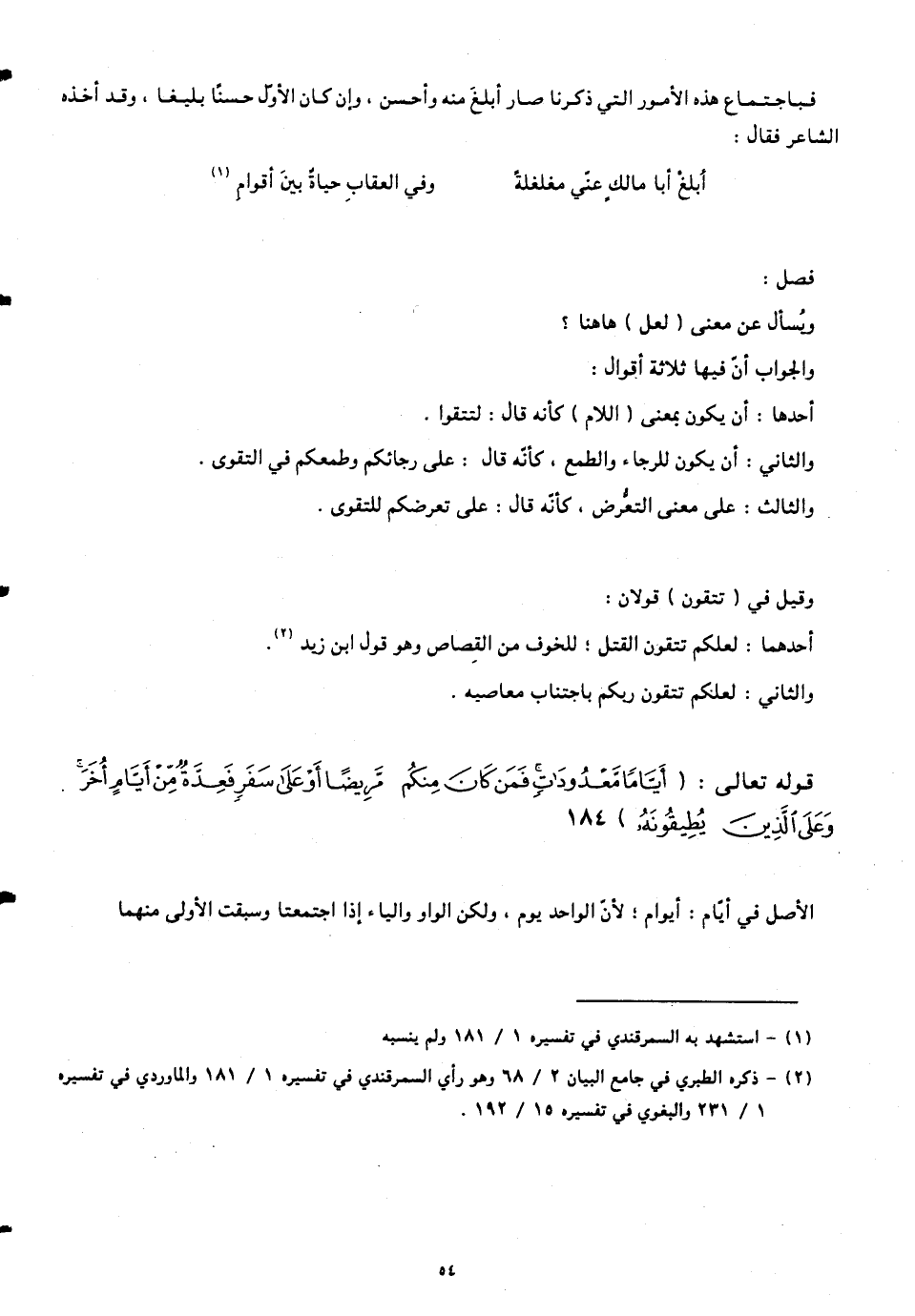 أحدها: أنّ يكون بمعنى (اللام) كأنّه قال: لتتقوا.