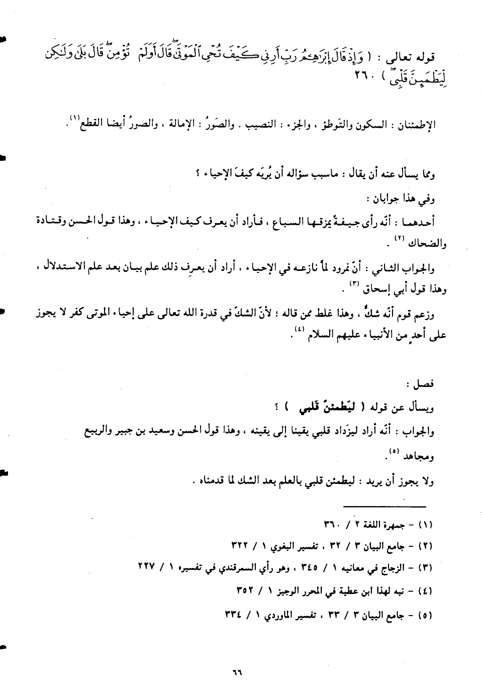 قوله تعالى: (وَإِذْ قَالَ إِبْرَاهِيمُ رَبِّ أَرِنِي كَيْفَ تُحْيِ الْمَوْتَى قَالَ أَوَلَمْ تُؤْمِنْ قَالَ بَلَى وَلَكِنْ لِيَطْمَئِنَّ قَلْبِي)
