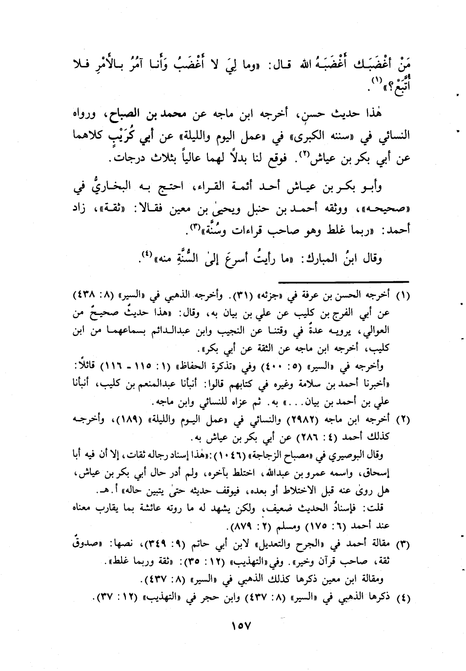 وَأَبُو بَكْرِ بْنُ عَيَّاشٍ احْمَد ائمة الْقُرَّاء احْتَجَّ بِهِ الْبُخَارِيُّ فِي صَحِيحِهِ وَوَثَّقَهُ أَحْمَدُ بْنُ حَنْبَلٍ وَيَحْيَى بْنُ مَعِينٍ فَقَالَا ثِقَةٌ زَادَ أَحْمَدُ رُبَّمَا غَلَطَ وَهُوَ صَاحِبُ قِرَاءَاتٍ وَسُنَّةٍ
