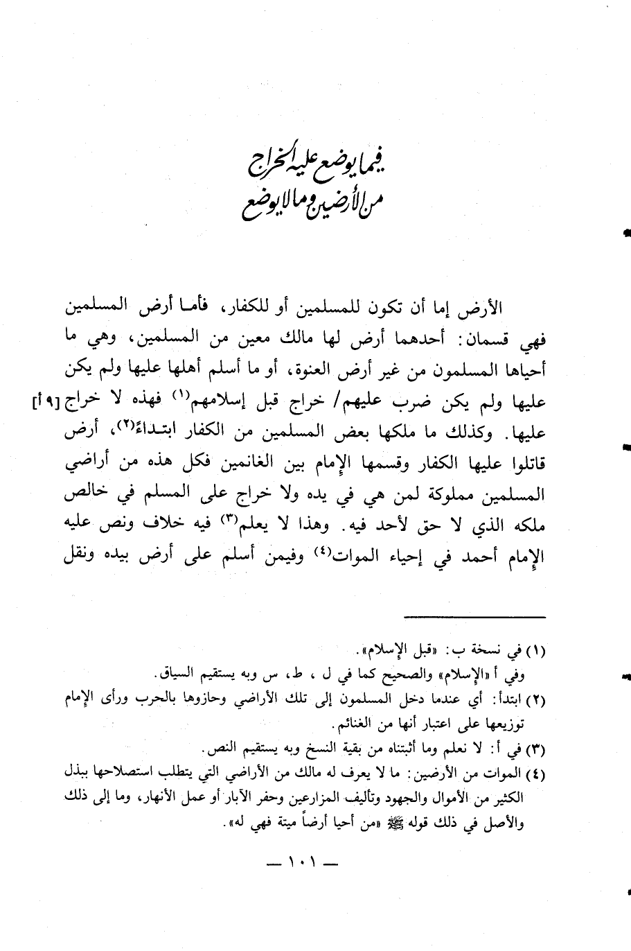 الصغار. وتأوله أبو عبيد على أنه استأجرها لأنه لو اشتراها لم يكن خراجها على البايع ولكن لعل ابن مسعود رضي الله عنه رأى جواز هذا الشرط في البيع وينبني على هذا المأخذ أيضا جواز بيع أرض الخراج دون شرائها وهو مذهب إسحاق نقل عنه حرب أنه قال في بيع أرض الخراج رخص فيه سفيان واشترى الحسن والحسين من أرض الخراج قلت أتكرهه؟ قال: إنما كرهوا الشراء فأما البيع فلا بأس به ورخص فيه وينبني عليه أيضا أنه لو باعها من وصي لم يكره وأنكر آخرون أن يكون الخراج جزية وقالوا بل هو أجرة محضة كأجرة أرض الوقف.