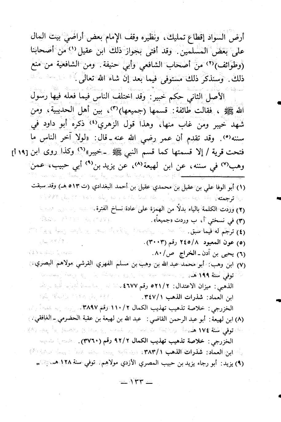 بعد الخمسمائة في مواضع ينتفع بها ليس لها مالك معين ووقفها الامام على رجل من أهل العلم ثم على عقبة ثم على الفقراء أو اتصل بالوقف أحكام القضاة والاسجال به فهل هذا الوقف صحيح؟ وهل يجوز لأحد من الولاة تغييره وصرفه الى جهة أخرى؟ أجاب ابن عقيل أن ما لا يعرف له مالك فتصرف الامام فيه نافذ بما يراه من المصلحة من وقف وغيره ولا يملك أحد من خلق الله اعتراضه ولا تغييره وكتبه ابن عقيل وبعده جوابي مثله وكتب محمد بن أحمد بن الشاشي جوابي مثله وكتب أحمد بن علي بن برهان وبعده الجواب وبالله التوفيق أنه ينفذ حكم الحاكم ولا يرد ولا يعترض عليه وكتب أحمد بن الشاشي وبعده الجواب صحيح وكتب الزيني الجواب صحيح وكتب ابن الحلواني الأجوبة المشار إليها موافقة للشرع وكتب أحمد المهني وسئل عن مثل ذلك جماعة من الطبقة الأخرى عبد الله بن محمد بن أبي عصرون وعبد الرحمن بن محمد الغرنوي الحنفي ويونس بن محمد بن منعة ومسعود النيسابوري فافتوا جميعا بالصحة قال ابن الصلاح: قلت ولصحة هذا الوقف اتجاه "انتهى".