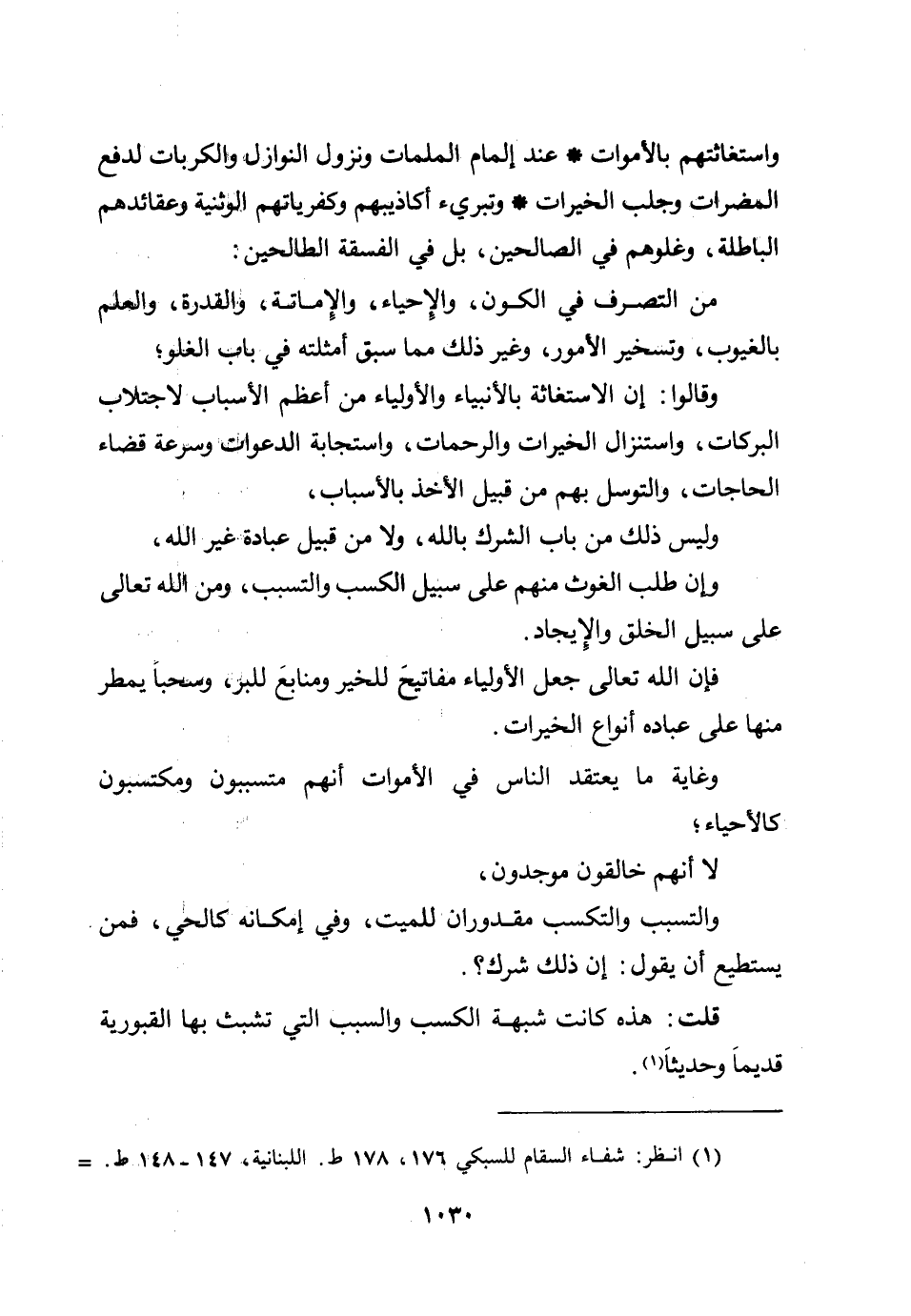 وغاية ما يعتقد الناس في الأموات أنهم متسببون ومكتسبون كالأحياء؛ لا أنهم خالقون موجدون، والتسبب والتكسب مقدوران للميت، وفي إمكانه كالحي، فمن يستطيع أن يقول: إن ذلك شرك؟