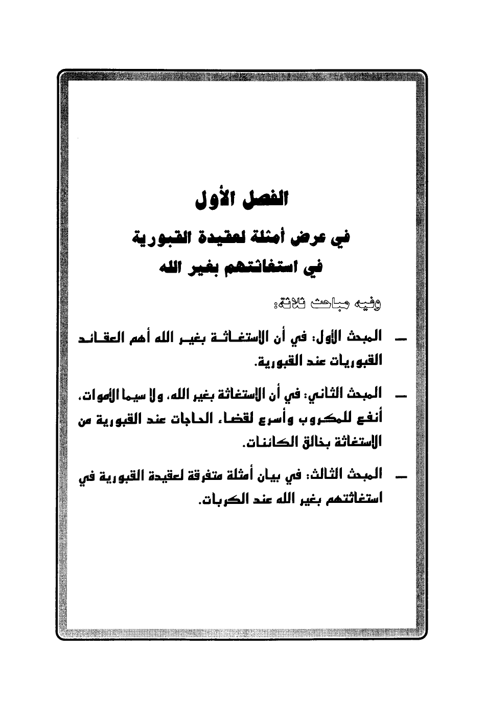 - المبحث الأول: في أن الاستغاثة بغير الله أهم العقائد القبوريات عند القبورية.