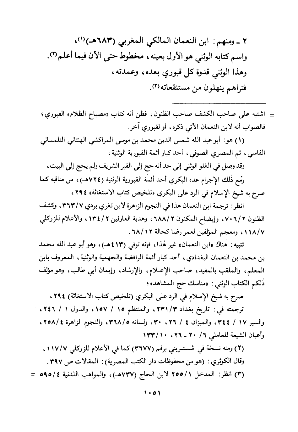 2 - ومنهم: ابن النعمان المالكي المغربي (683هـ) ، واسم كتابه الوثني هو الأول بعينه، مخطوط حتى الآن فيما أعلم.
