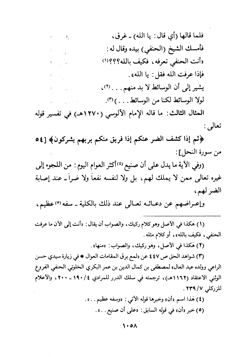 المثال الثالث: ما قاله الإمام الآلوسي (1270هـ) في تفسير قوله تعالى: