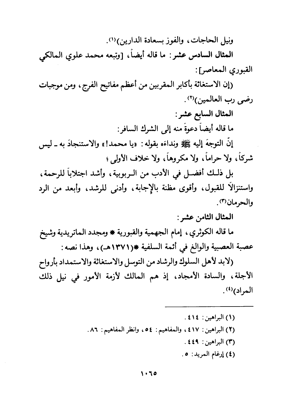 المثال السادس عشر: ما قاله أيضا، [وتبعه محمد علوي المالكي القبوري المعاصر] :
