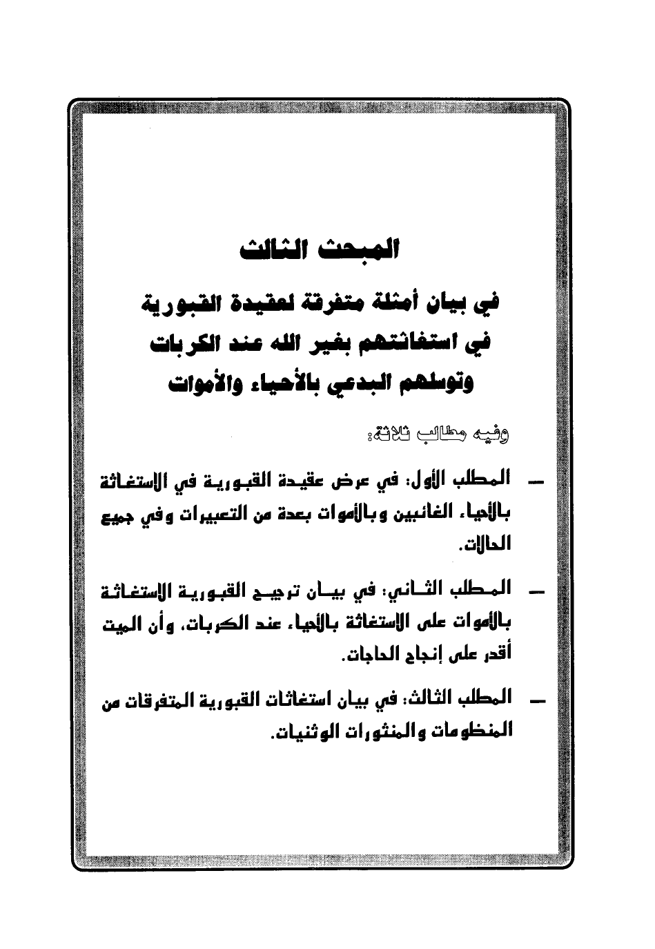المطلب الثالث: في بيان استغاثات القبورية المتفرقات من المنظومات والمنثورات الوثنيات.