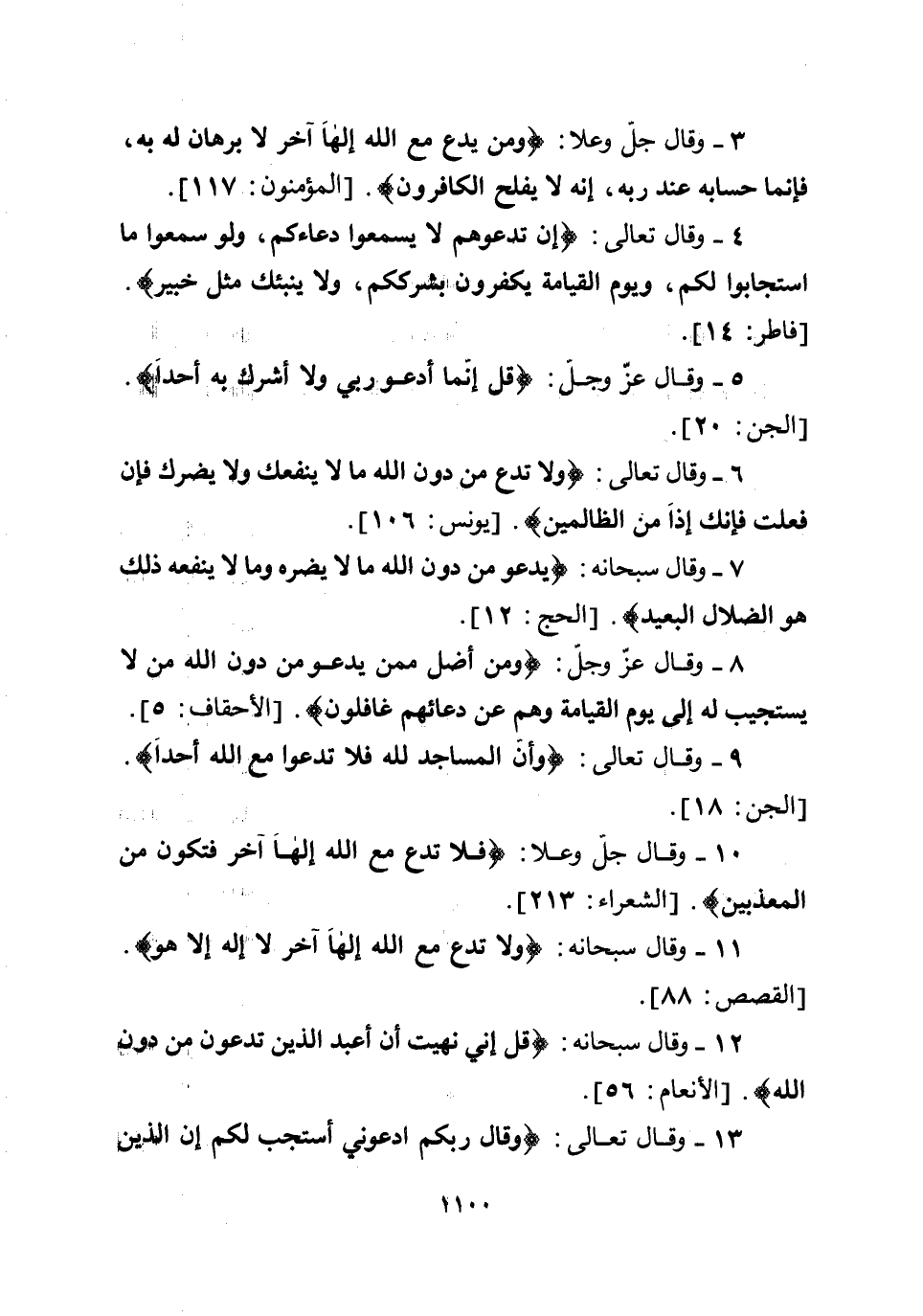 5 - وقال عز وجل: {قُلْ إِنَّمَا أَدْعُو رَبِّي وَلَا أُشْرِكُ بِهِ أَحَدًا} [الجن: 20] .