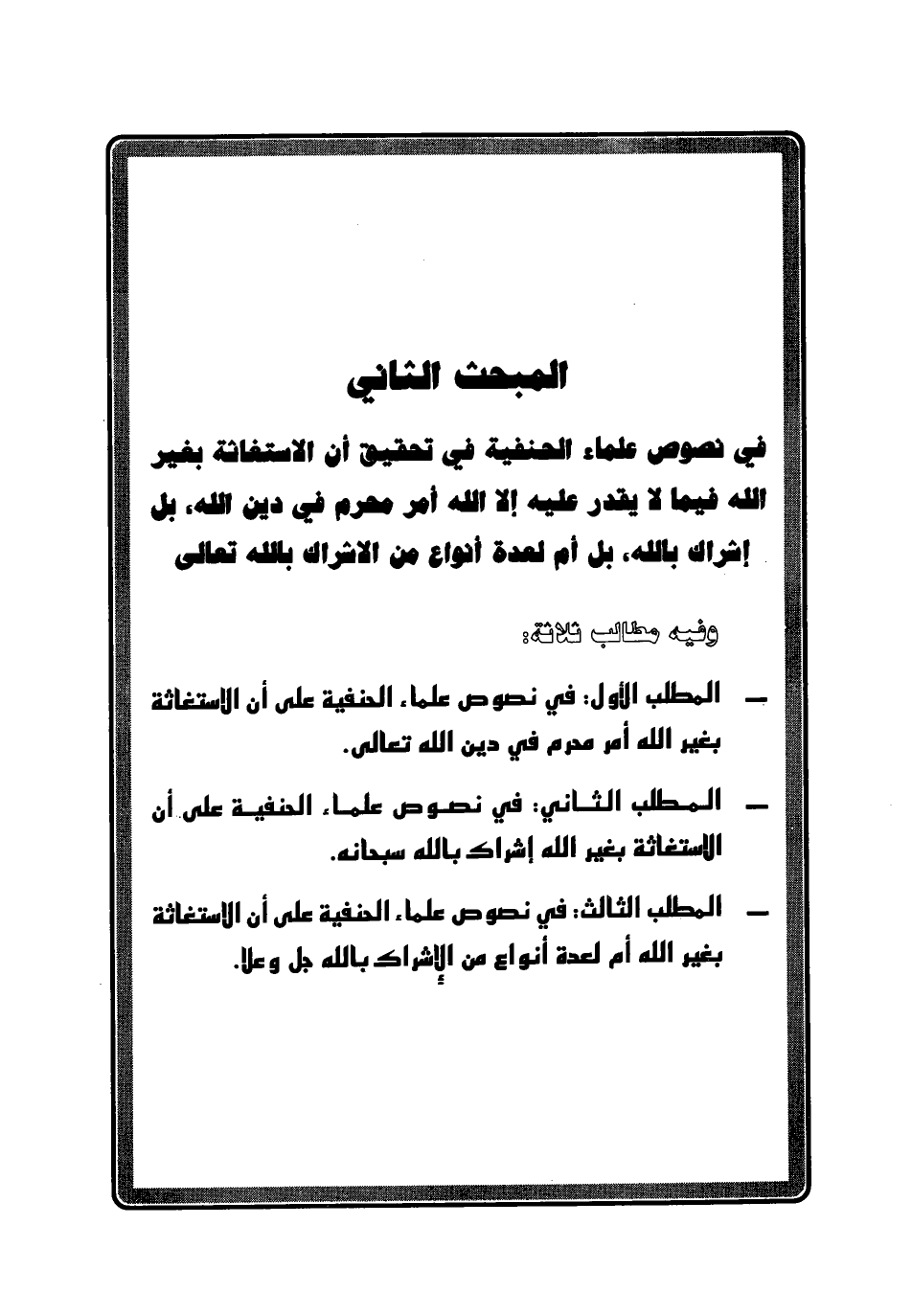- المطلب الثالث: في نصوص علماء الحنفية على أن الاستغاثة بغير الله أم لعدة أنواع من الإشراك بالله جل وعلا.