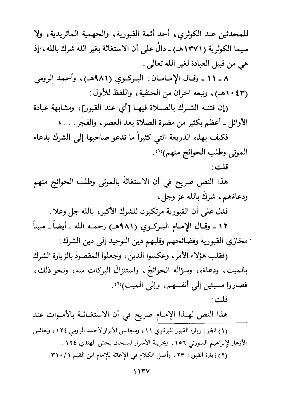 8 -11- وقال الإمامان: البركوي (981هـ) ، وأحمد الرومي (1043هـ) ، وتبعه آخران من الحنفية، واللفظ للأول: