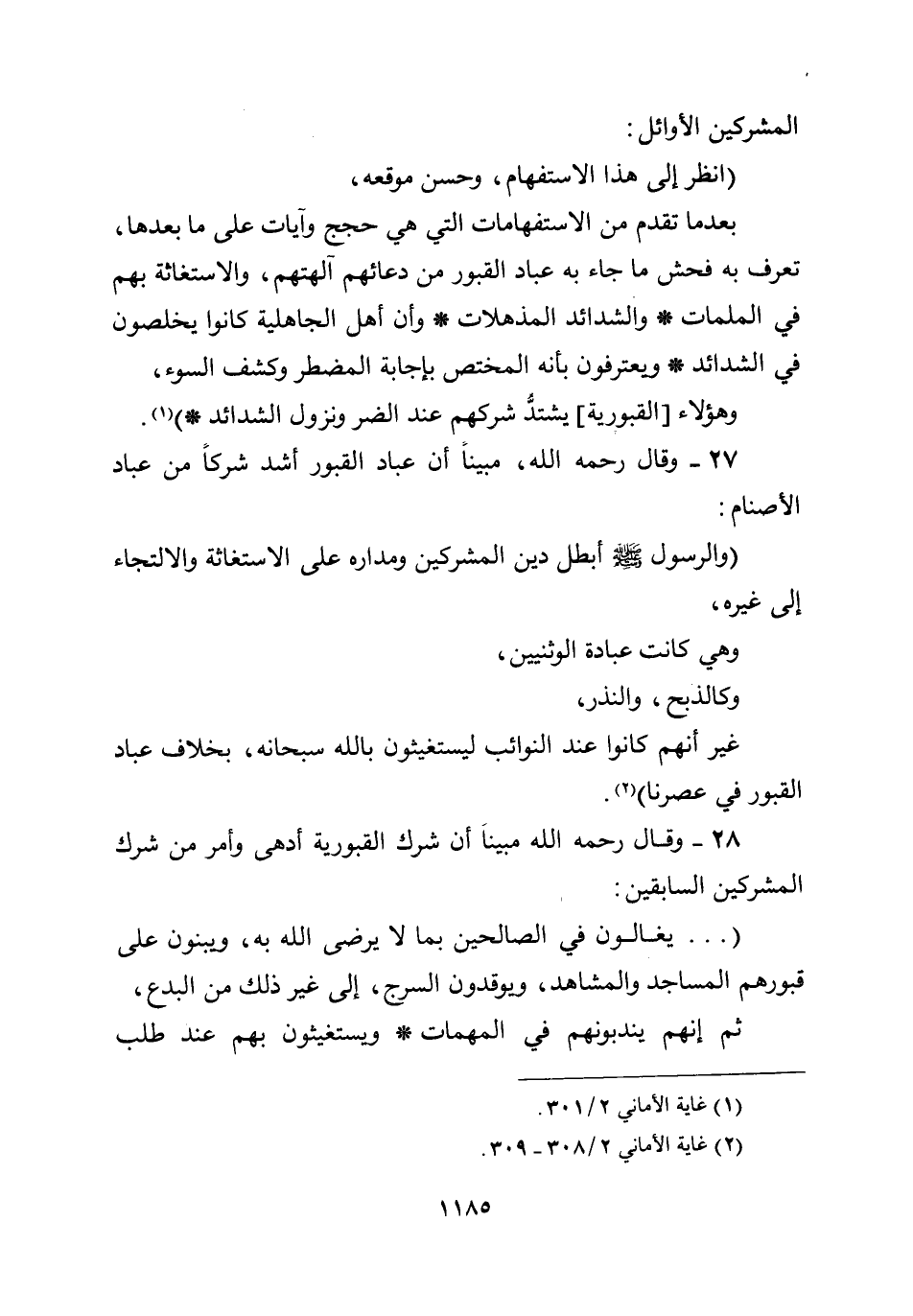 28 - وقال رحمه الله مبينا أن شرك القبورية أدهى وأمر من شرك المشركين السابقين: