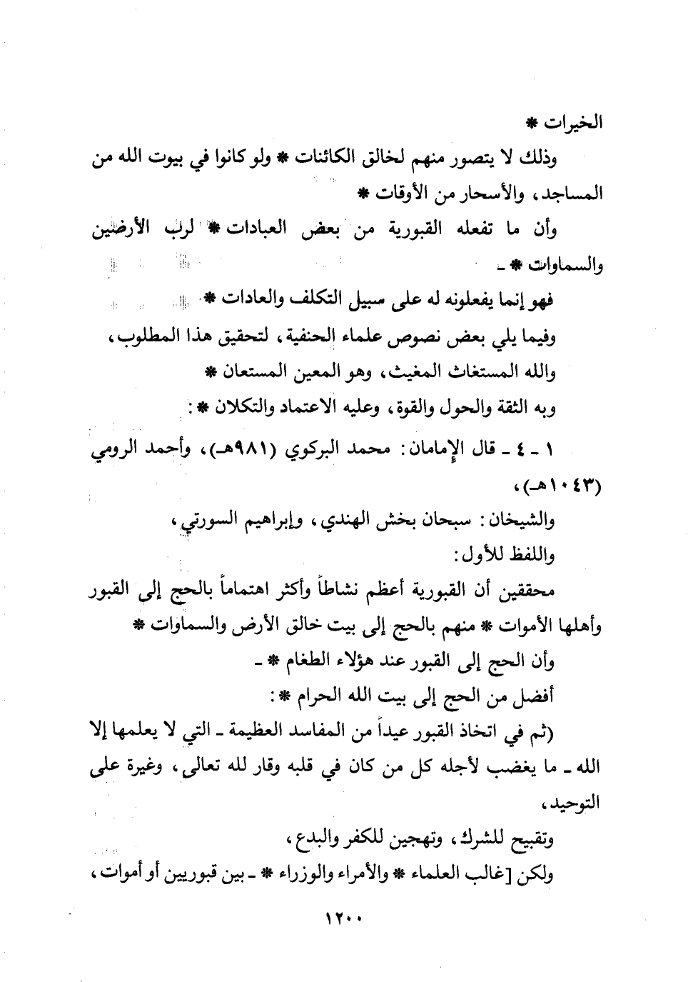 1 -4- قال الإمامان: محمد البركوي (981هـ) ، وأحمد الرومي (1043هـ) ، والشيخان: سبحان بخش الهندي، وإبراهيم السورتي، واللفظ للأول: