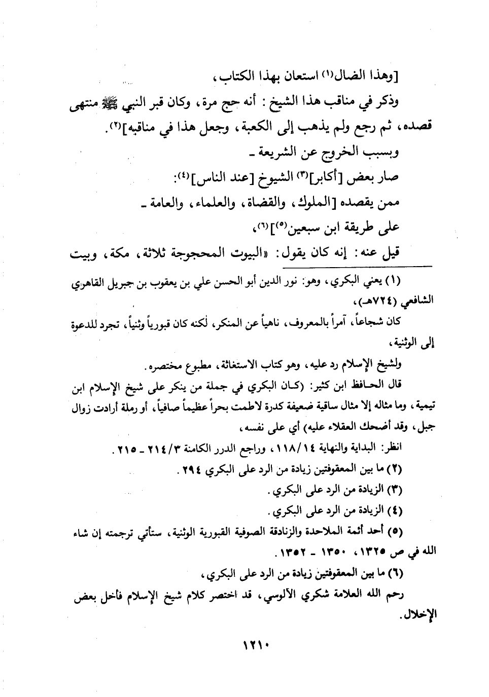 [وهذا الضال استعان بهذا الكتاب، وذكر في مناقب هذا الشيخ، أنه حج مرة، وكان قبر النبي صلى الله عليه وسلم منتهى قصده، ثم رجع ولم يذهب إلى الكعبة، وجعل هذا في مناقبه] .