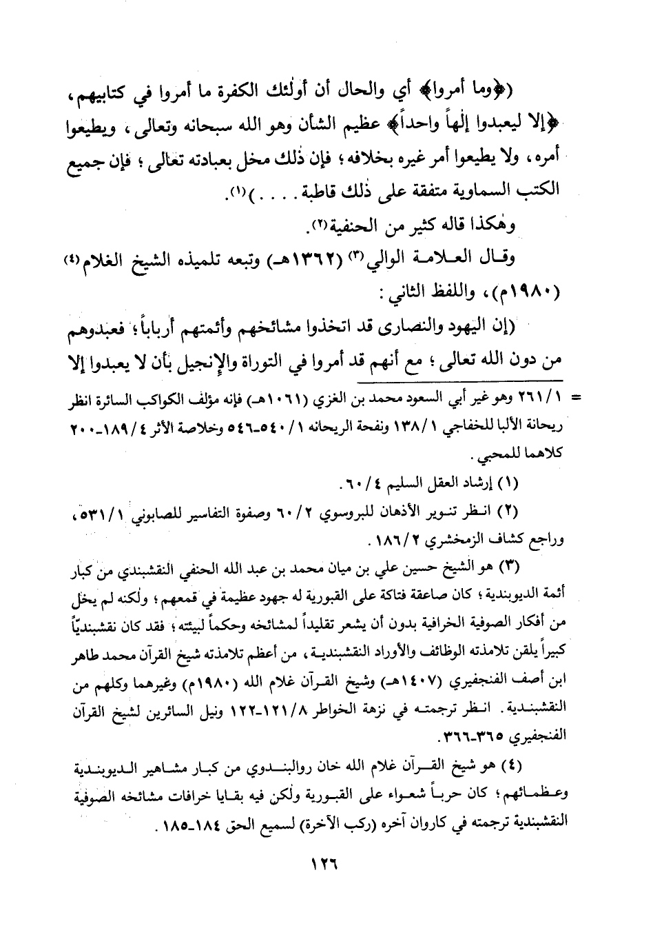 (إن اليهود والنصارى قد اتخذوا مشائخهم وأئمتهم أربابًا؛ فعبدوهم من دون الله تعالى؛ مع أنهم قد أمروا في التوراة والإنجيل بأن لا يعبدوا إلا