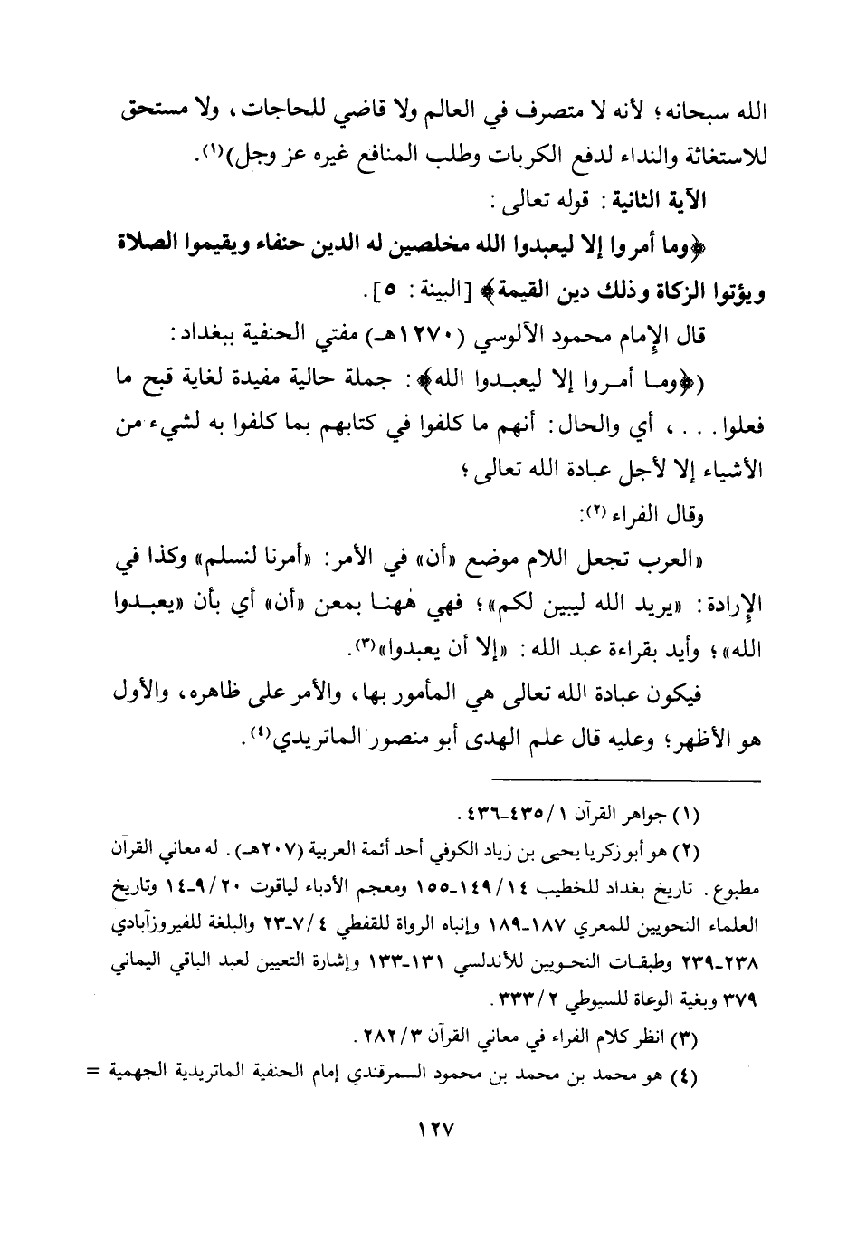 قال الإمام محمود الآلوسي (1270هـ) مفتي الحنفية ببغداد: