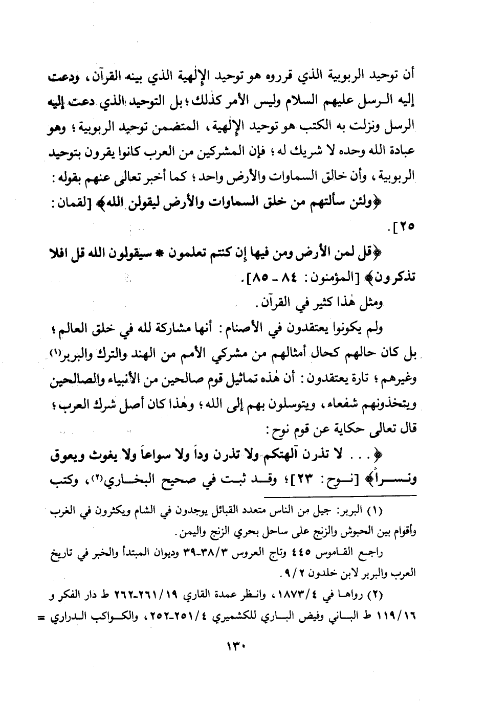 أن توحيد الربوبية الذي قرروه هو توحيد الإلهية الذي بينه القرآن، ودعت إليه الرسل عليهم السلام وليس الأمر كذلك؛ بل التوحيد الذي دعت إليه الرسل ونزلت به الكتب هو توحيد الإلهية، المتضمن توحيد الربوبية؛ وهو عبادة الله وحده لا شريك له؛ فإن المشركين من العرب كانوا يقرون بتوحيد الربوبية، وأن خالق السماوات والأرض واحد؛ كما أخبر تعالى عنهم بقوله: