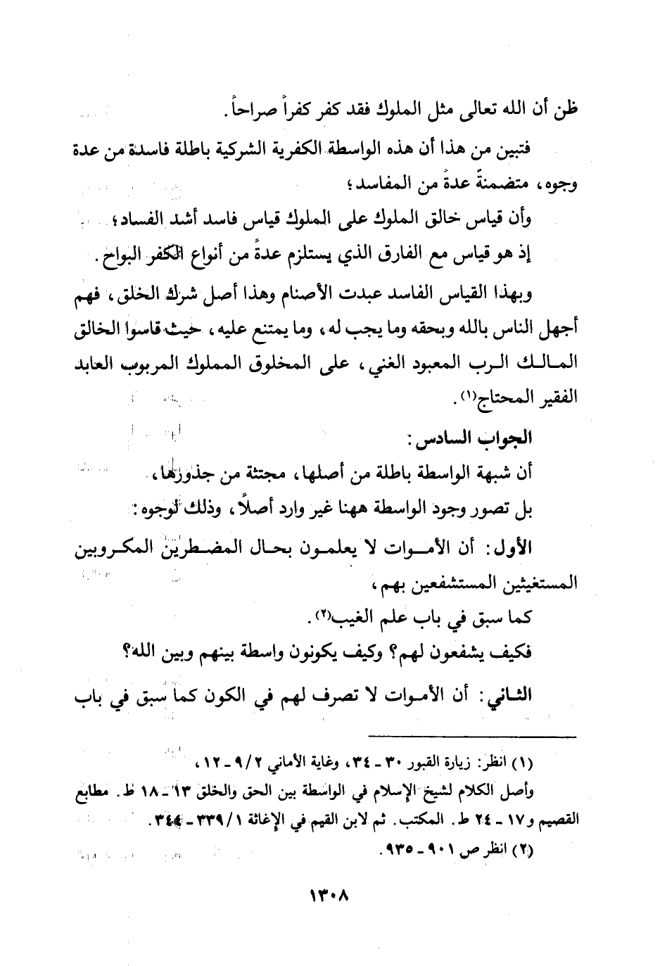 فتبين من هذا أن هذه الواسطة الكفرية الشركية باطلة فاسدة من عدة وجوه، متضمنة عدة من المفاسد؛ وأن قياس خالق الملوك على الملوك قياس فاسد أشد الفساد؛ إذ هو قياس مع الفارق الذي يستلزم عدة من أنواع الكفر البواح.