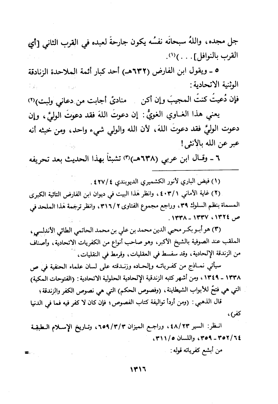 5 - ويقول ابن الفارض (632هـ) أحد كبار أئمة الملاحدة الزنادقة الوثنية الاتحادية: