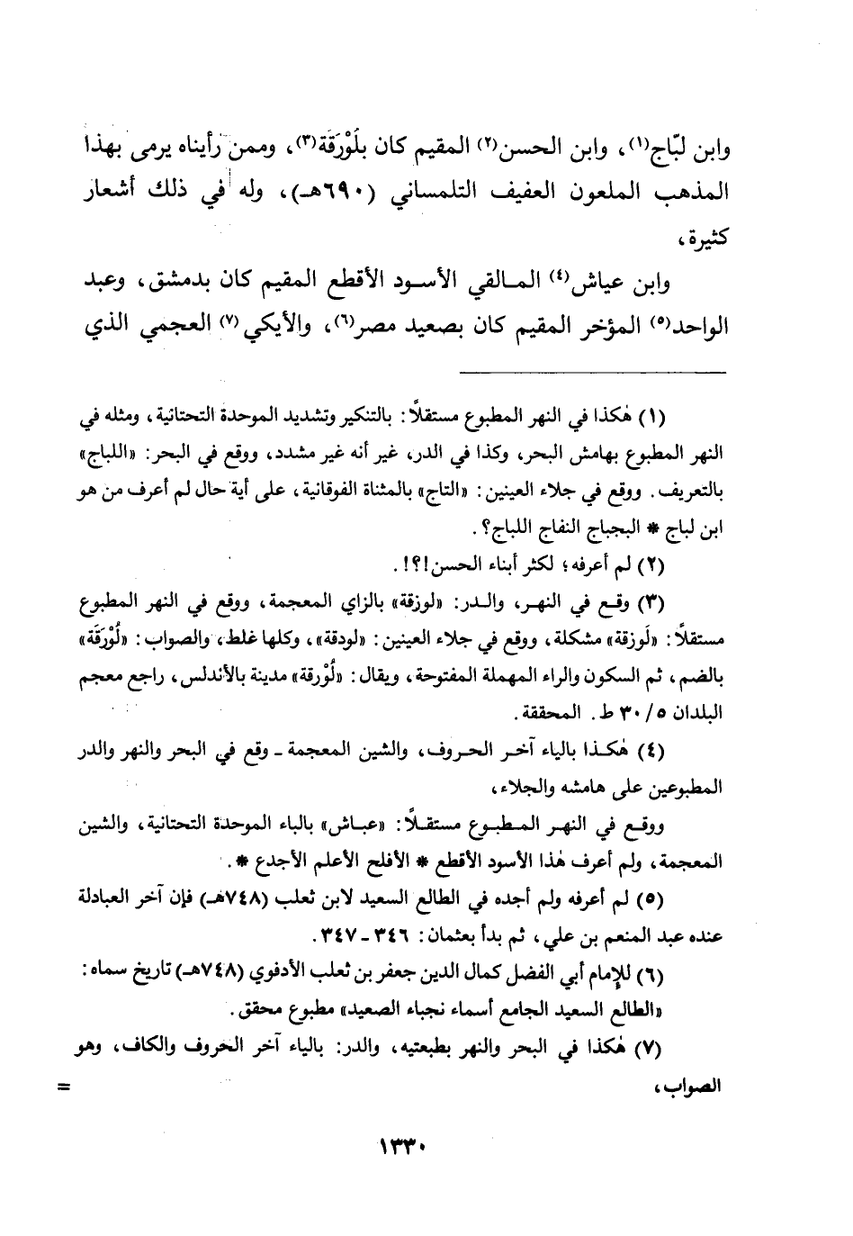 وابن لباج، وابن الحسن المقيم كان بلورقة، وممن رأيناه يرمى بهذا المذهب الملعون، العفيف التلمساني (690هـ) ، وله في ذلك أشعار كثيرة، وابن عياش المالقي الأسود الأقطع المقيم كان بدمشق، وعبد الواحد المؤخر المقيم كان بصعيد مصر، والأيكي العجمي الذي