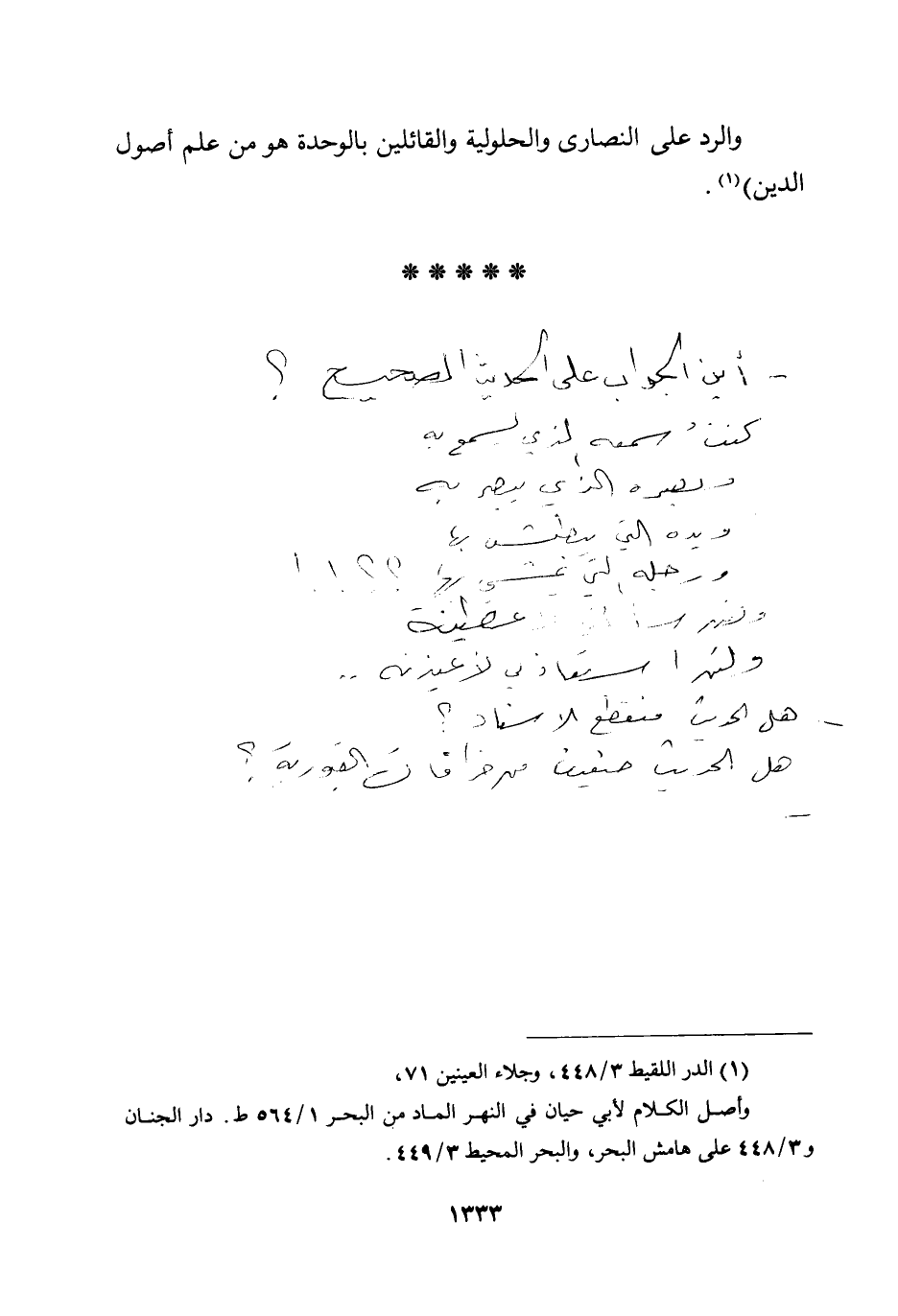 والرد على النصارى والحلولية والقائلين بالوحدة هو من علم أصول الدين) .