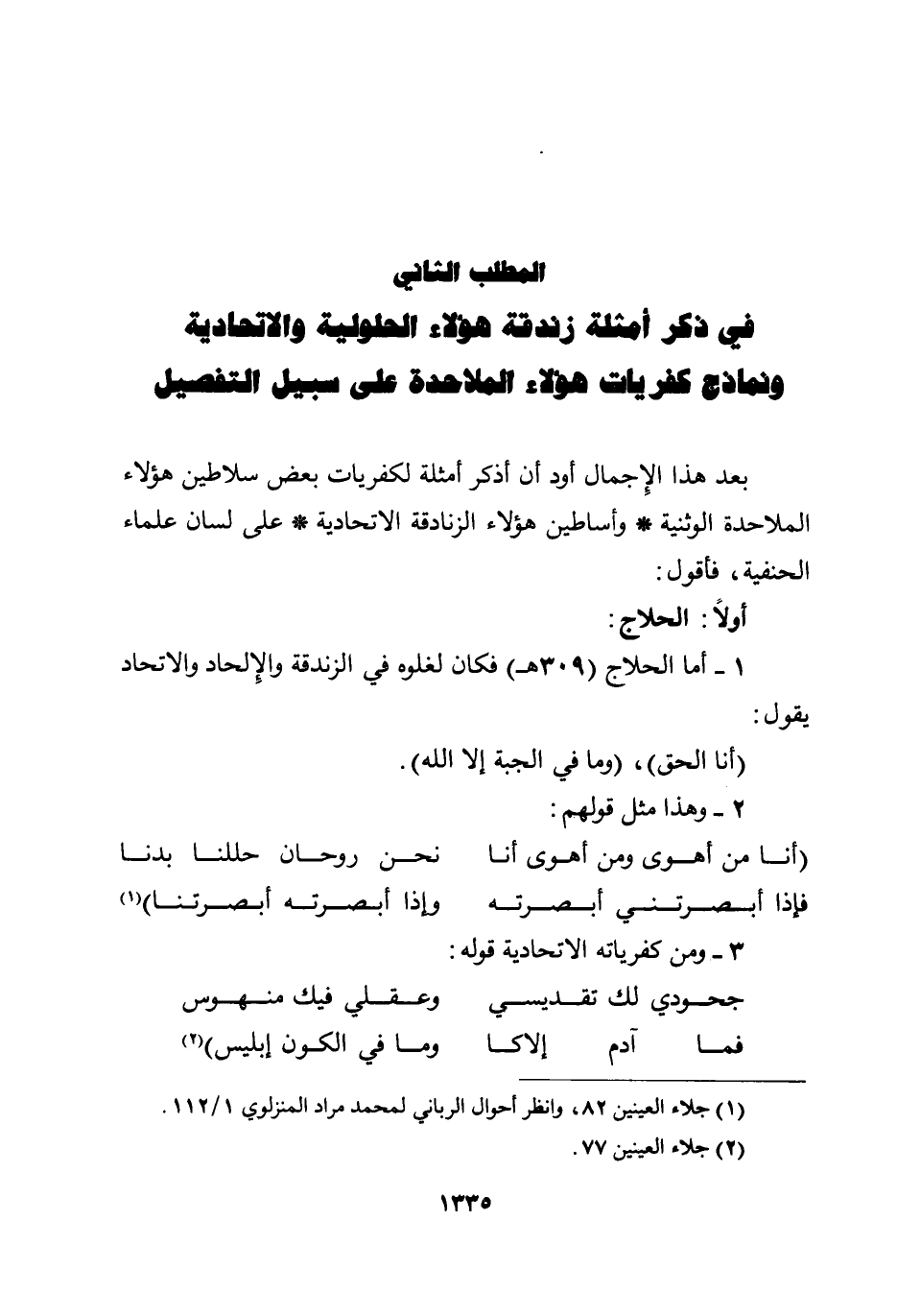 بعد هذا الإجمال أود أن أذكر أمثلة لكفريات بعض سلاطين هؤلاء الملاحدة الوثنية * وأساطين هؤلاء الزنادقة الاتحادية * على لسان علماء الحنفية، فأقول: