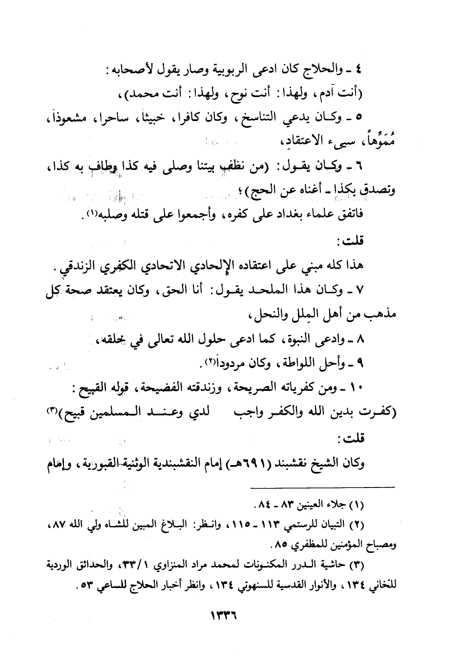 4 - والحلاج كان ادعى الربوبية وصار يقول لأصحابه: