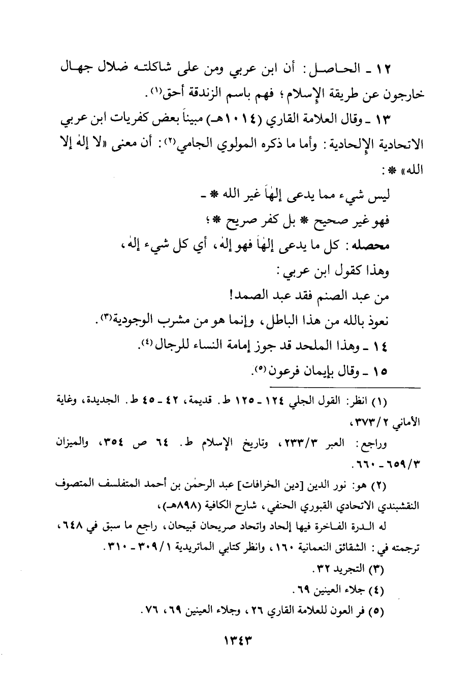 12 - الحاصل: أن ابن عربي ومن على شاكلته ضلال جهال خارجون عن طريقة الإسلام؛ فهم باسم الزندقة أحق.
