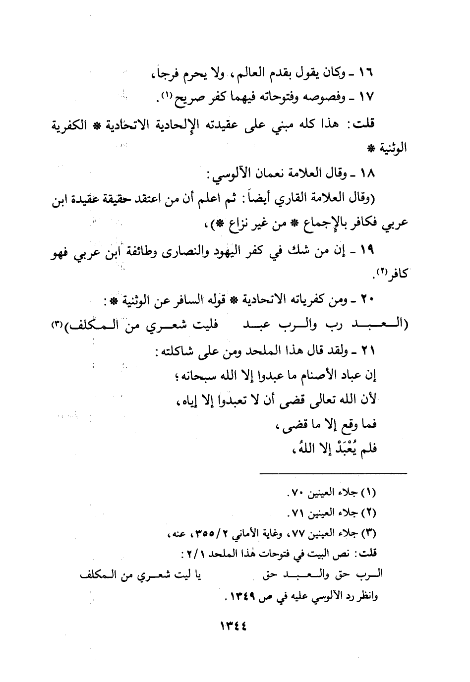 17 - وفصوصه وفتوحاته فيهما كفر صريح.