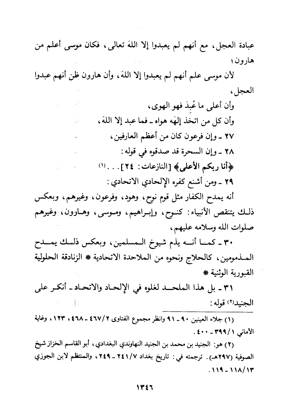 31 -بل هذا الملحد لغلوه في الإلحاد والاتحاد - أنكر على الجنيد قوله: