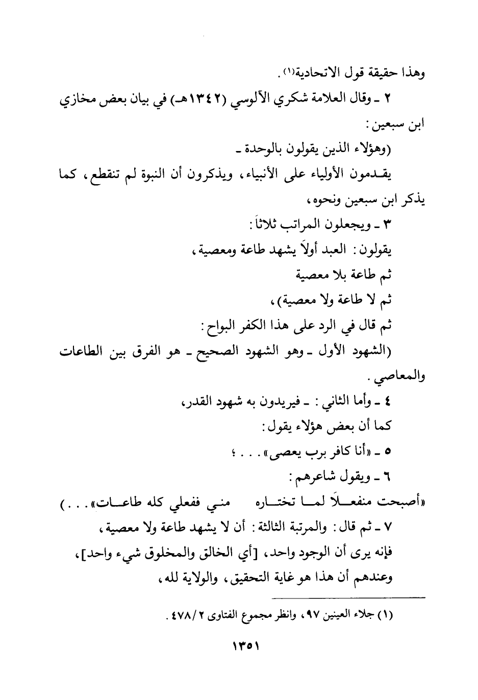 2 - وقال العلامة شكري الآلوسي (1342هـ) في بيان بعض مخازي ابن سبعين: