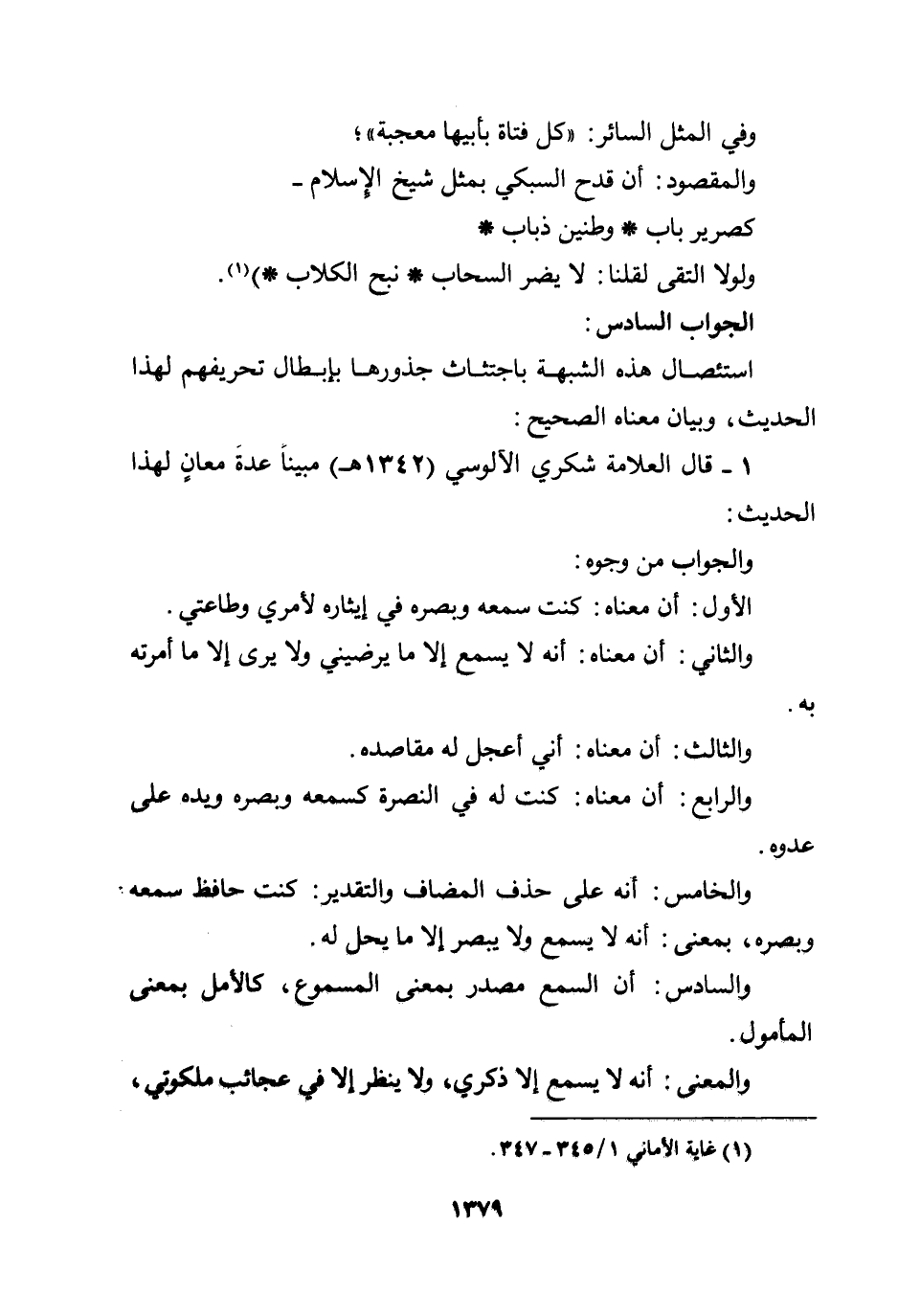 1 - قال العلامة شكري الآلوسي (1342هـ) مبيناً عدة معان لهذا الحديث: