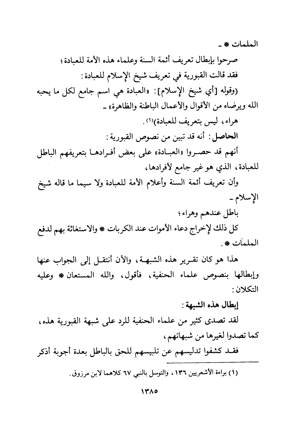 الملمات * - صرحوا بإبطال تعريف أئمة السنة وعلماء هذه الأمة للعبادة؛ فقد قالت القبورية في تعريف شيخ الإسلام للعبادة: