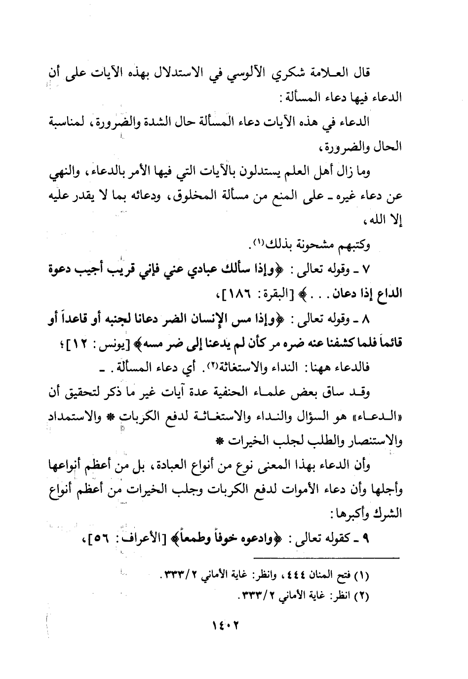 وقد ساق بعض علماء الحنفية عدة آيات غير ما ذكر لتحقيق أن ((الدعاء)) هو السؤال والنداء والاستغاثة لدفع الكربات * والاستمداد والاستنصار والطلب لجلب الخيرات *.