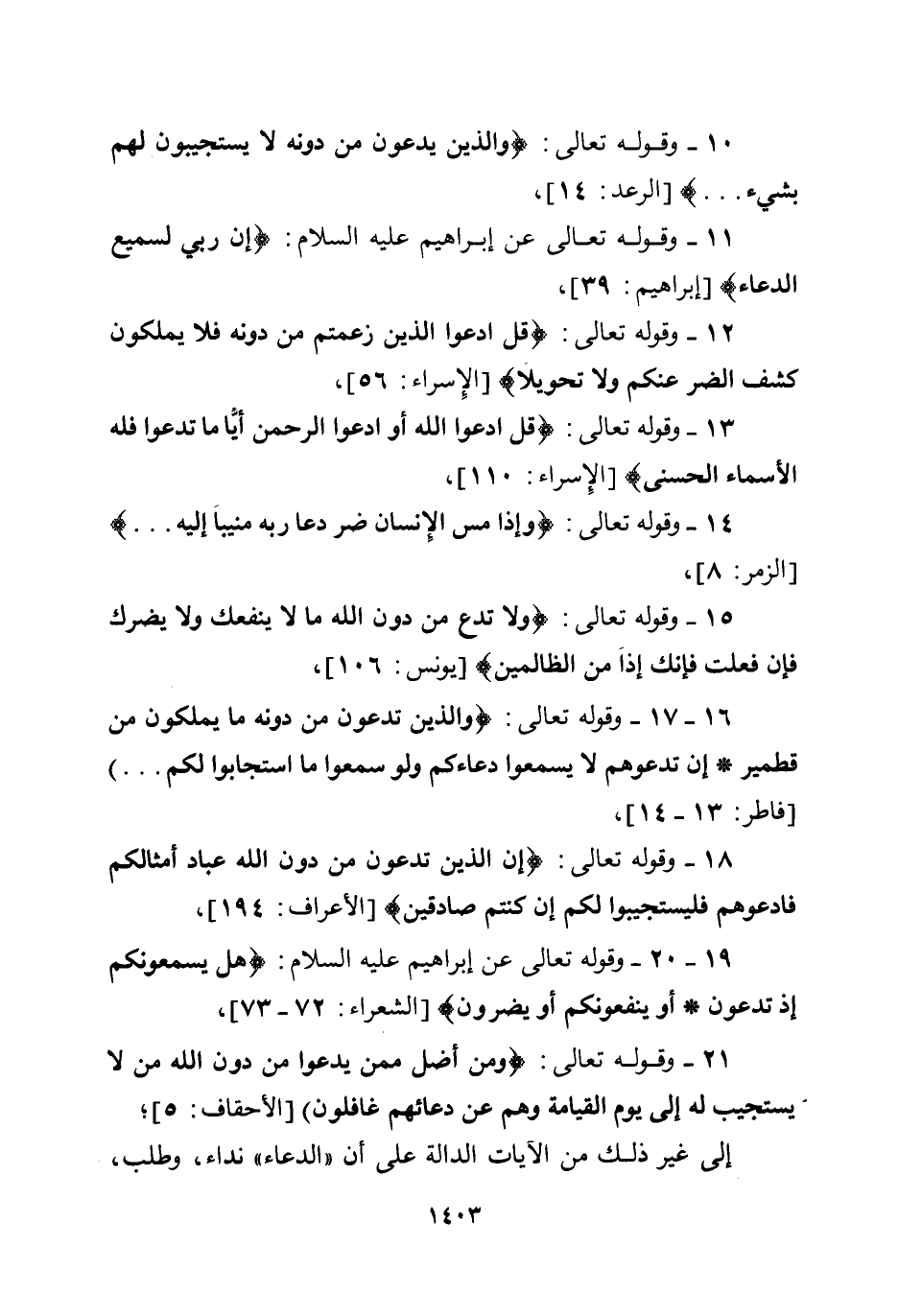 19 -20- وقوله تعالى عن إبراهيم عليه السلام: {هَلْ يَسْمَعُونَكُمْ إِذْ تَدْعُونَ أَوْ يَنْفَعُونَكُمْ أَوْ يَضُرُّونَ} [الشعراء: 72-73] .