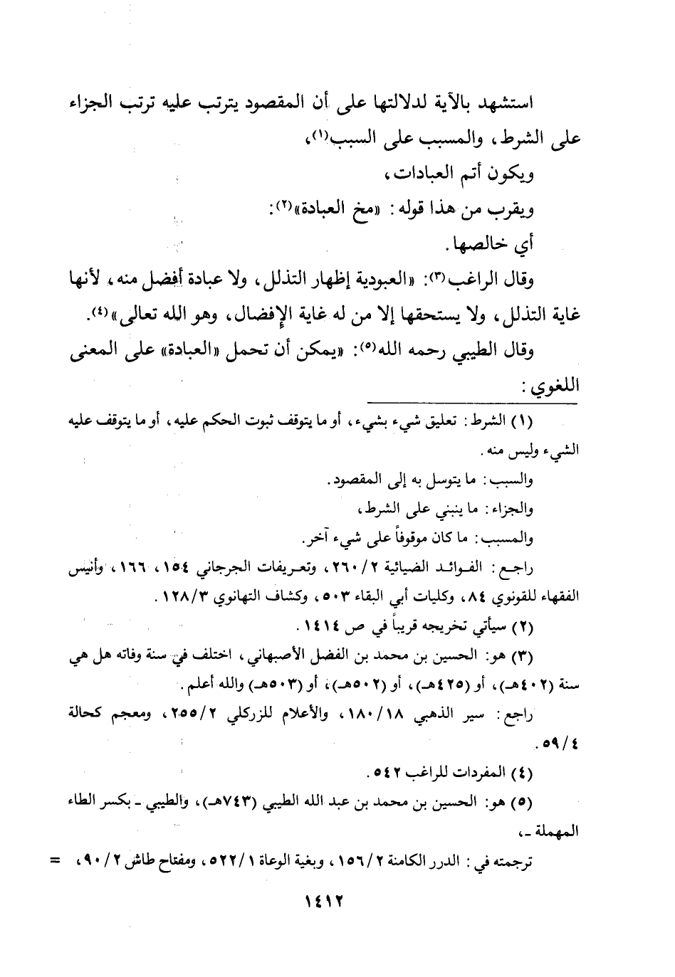 وقال الطيبي رحمه الله: ((يمكن أن تحمل ((العبادة)) على المعنى اللغوي: