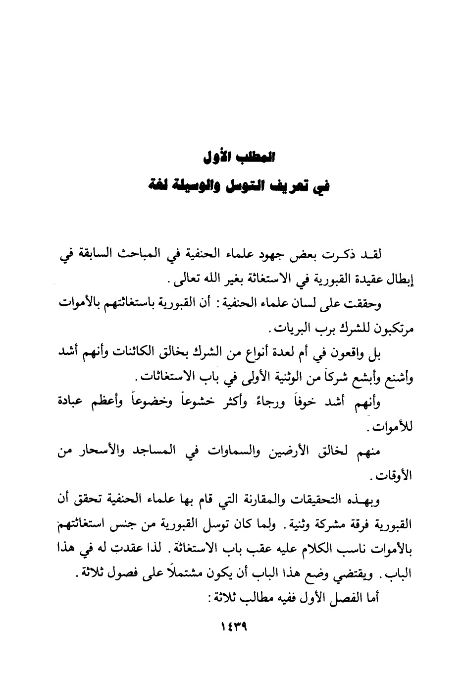 وبهذه التحقيقات والمقارنة التي قام بها علماء الحنفية تحقق أن القبورية فرقة مشركة وثنية. ولما كان توسل القبورية من جنس استغاثتهم بالأموات، ناسب الكلام عليه عقب باب الاستغاثة. لذا عقدت له في هذا الباب.