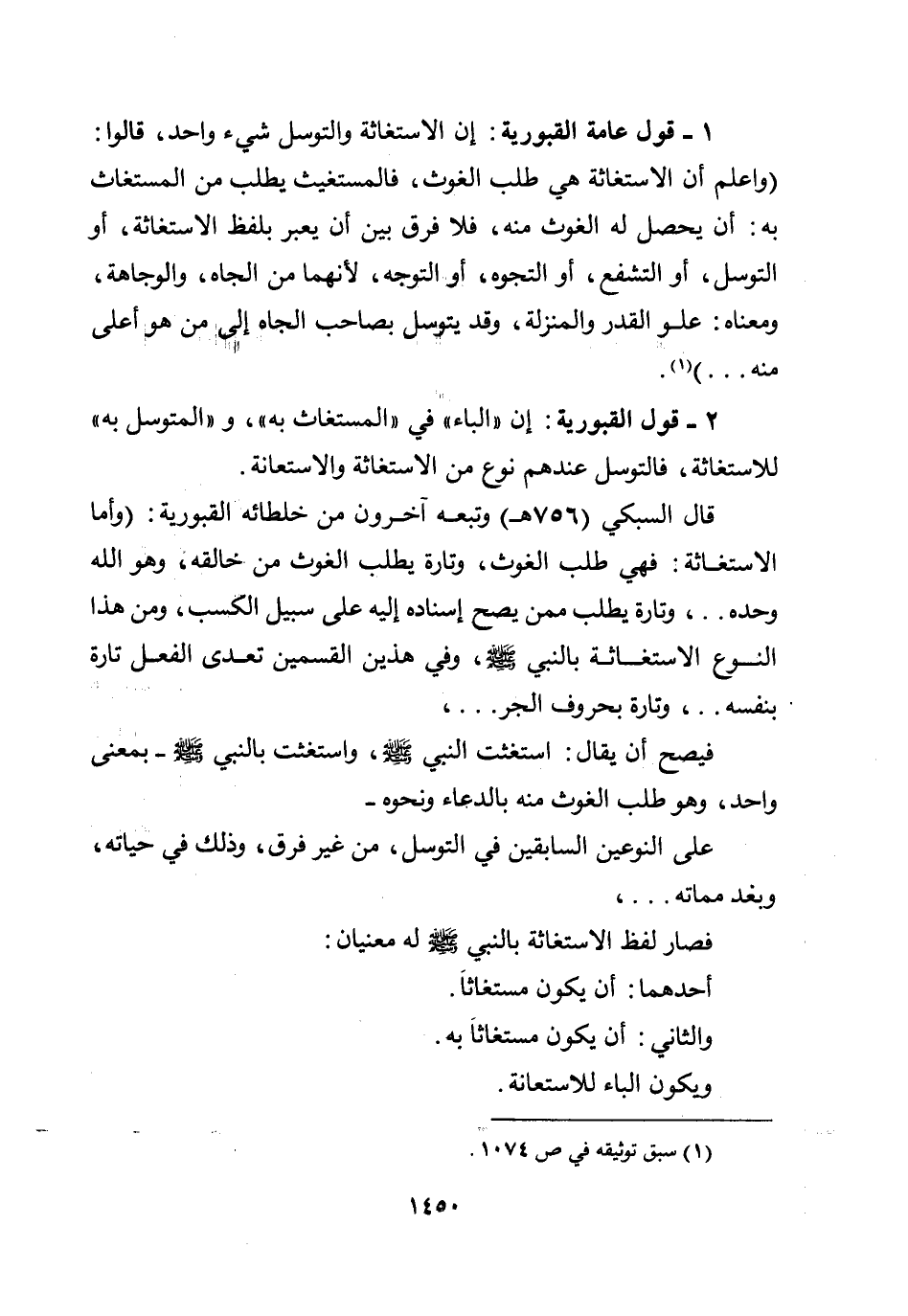 2 -قول القبورية: إن ((الباء)) في ((المستغاث به)) ، و ((المتوسل به)) للاستغاثة، فالتوسل عندهم نوع من الاستغاثة والاستعانة.