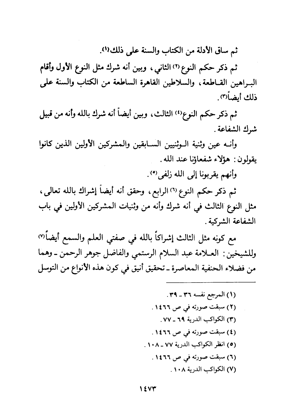 ثم ذكر حكم النوع الثاني، وبين أنه شرك مثل النوع الأول، وأقام البراهين القاطعة والسلاطين القاهرة الساطعة من الكتاب والسنة على ذلك أيضاً.