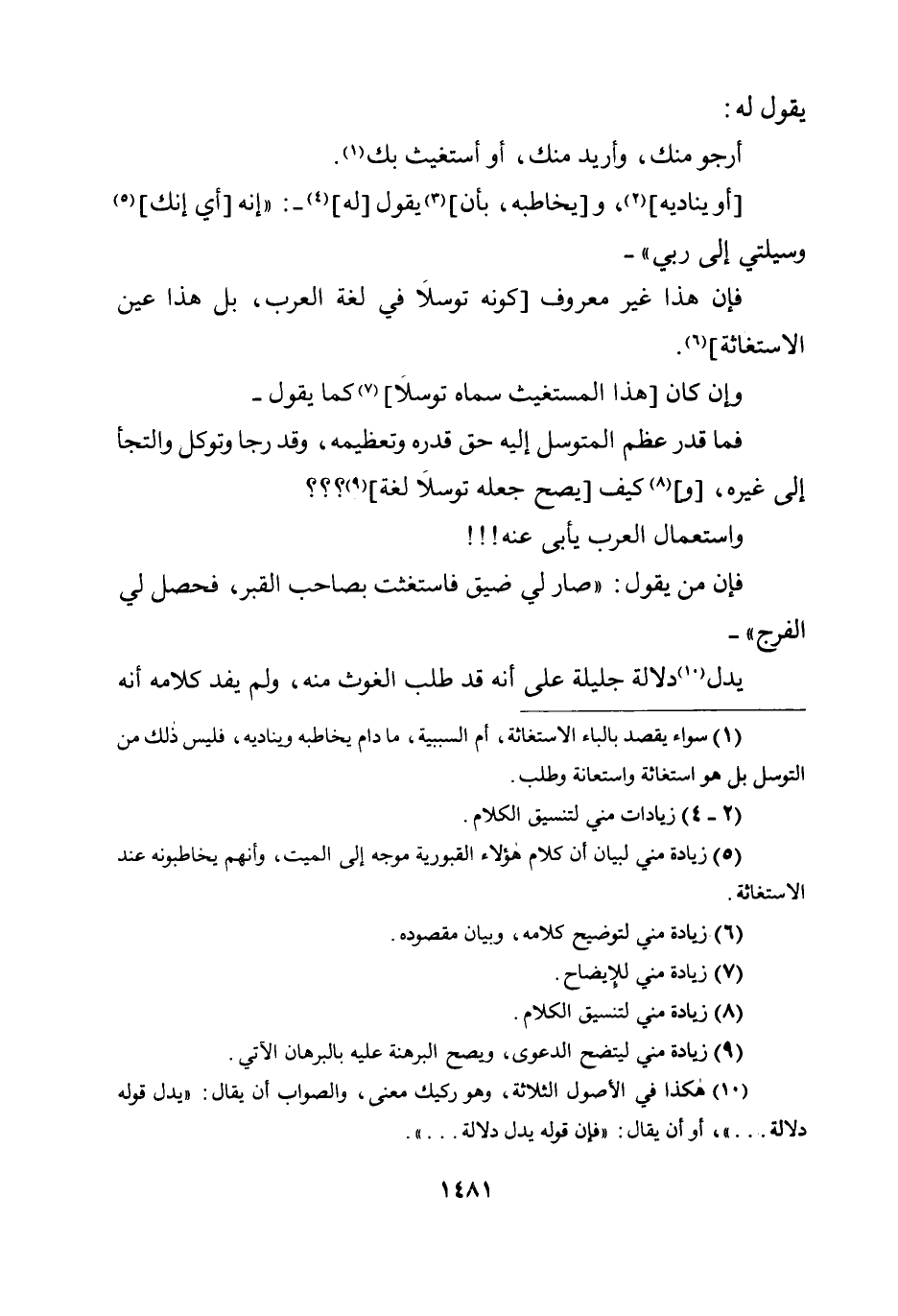 فإن من يقول: ((صار لي ضيق فاستغثت بصاحب القبر، فحصل لي الفرج)) - يدل دلالة جليلة على أنه قد طلب الغوث منه، ولم يفد كلامه أنه
