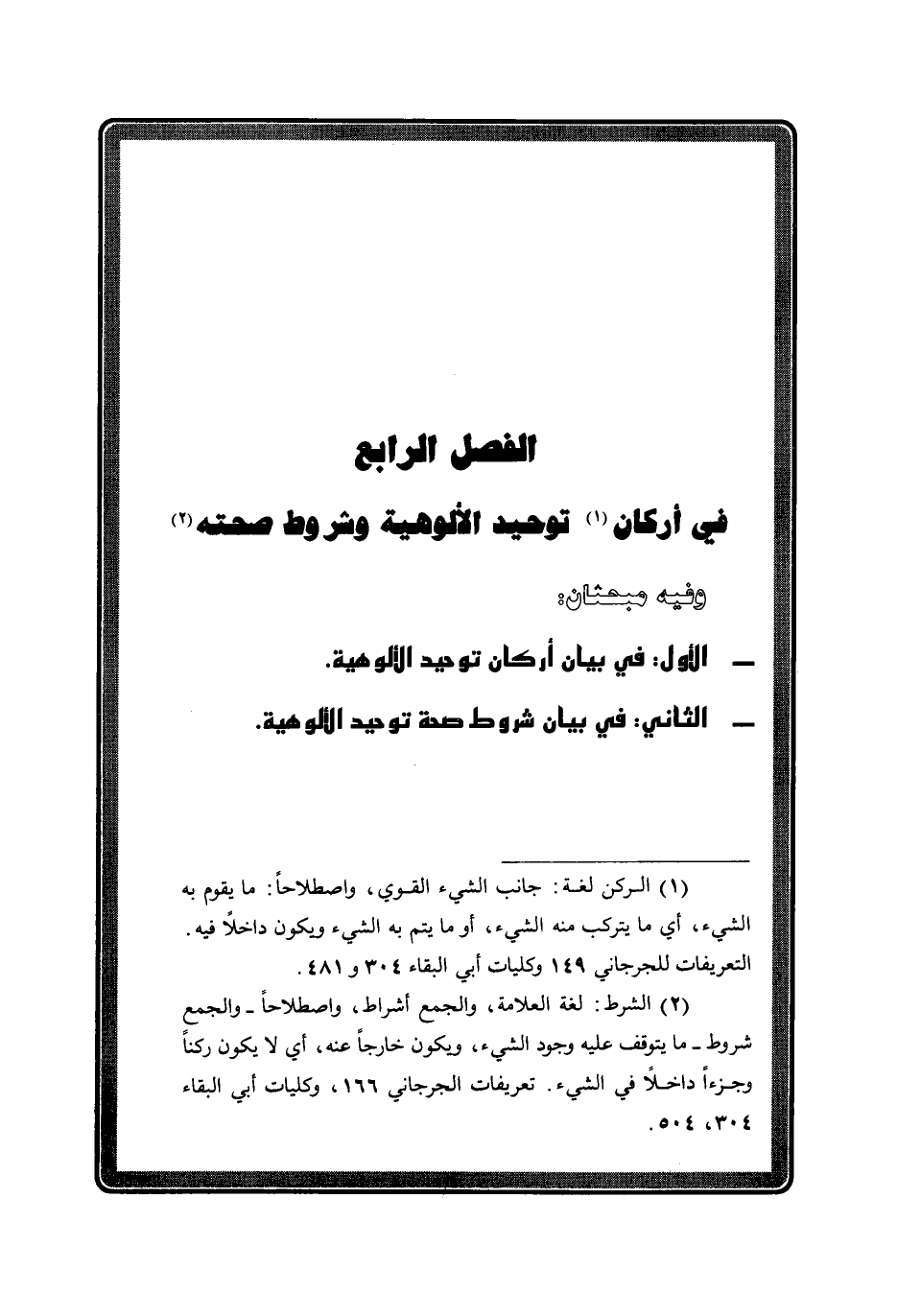 - الأول: في بيان أركان توحيد الألوهية.