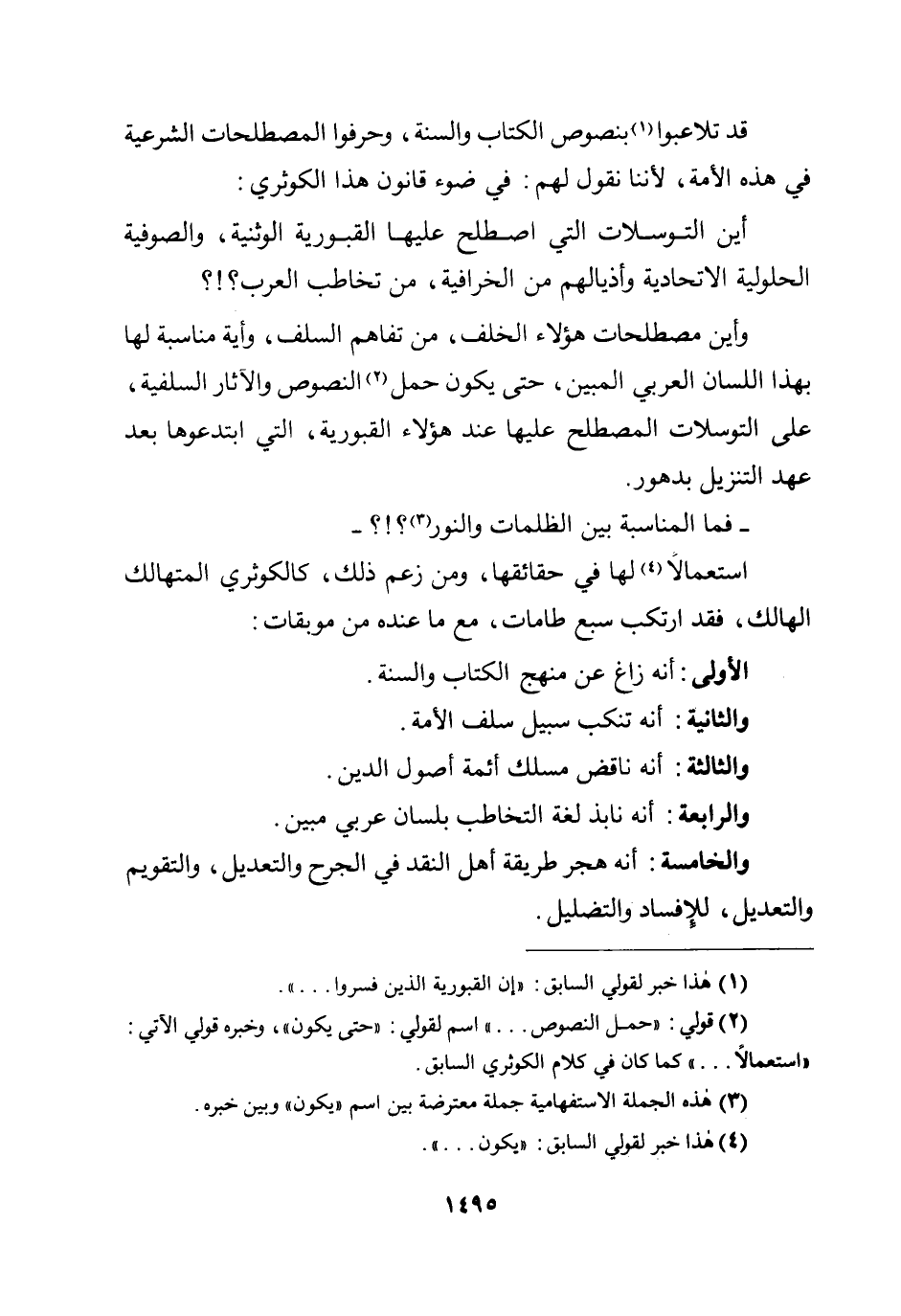 قد تلاعبوا بنصوص الكتاب والسنة، وحرفوا المصطلحات الشرعية في هذه الأمة، لأننا نقول لهم في ضوء قانون هذا الكوثري: