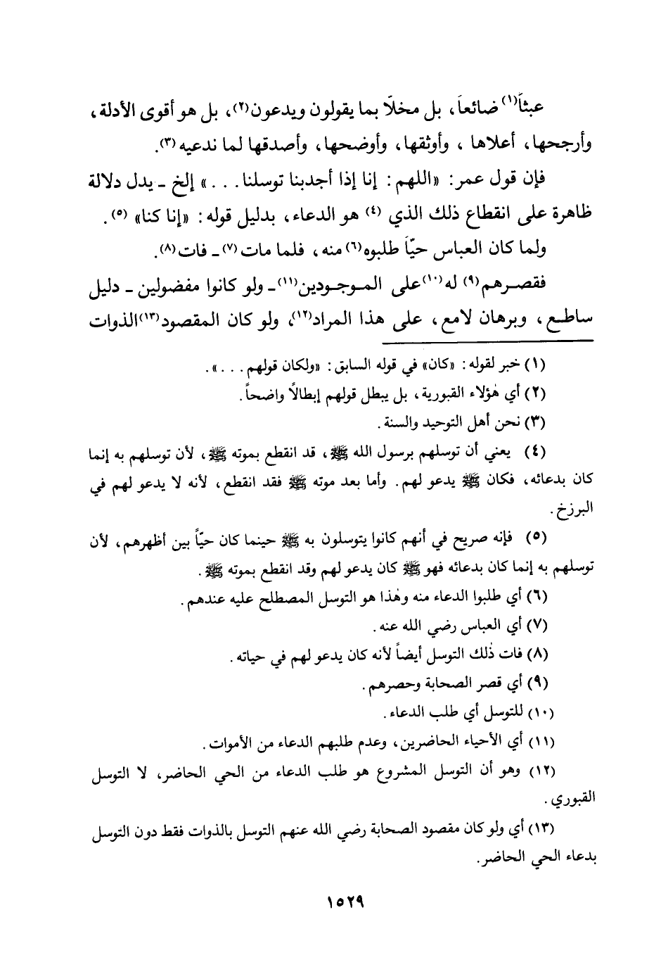 فإن قول عمر: ((اللهم: إنا إذا أجدبنا توسلنا ... )) إلخ - يدل دلالة ظاهرة على انقطاع ذلك الذي هو الدعاء، بدليل قوله: ((إنا كنا)) .