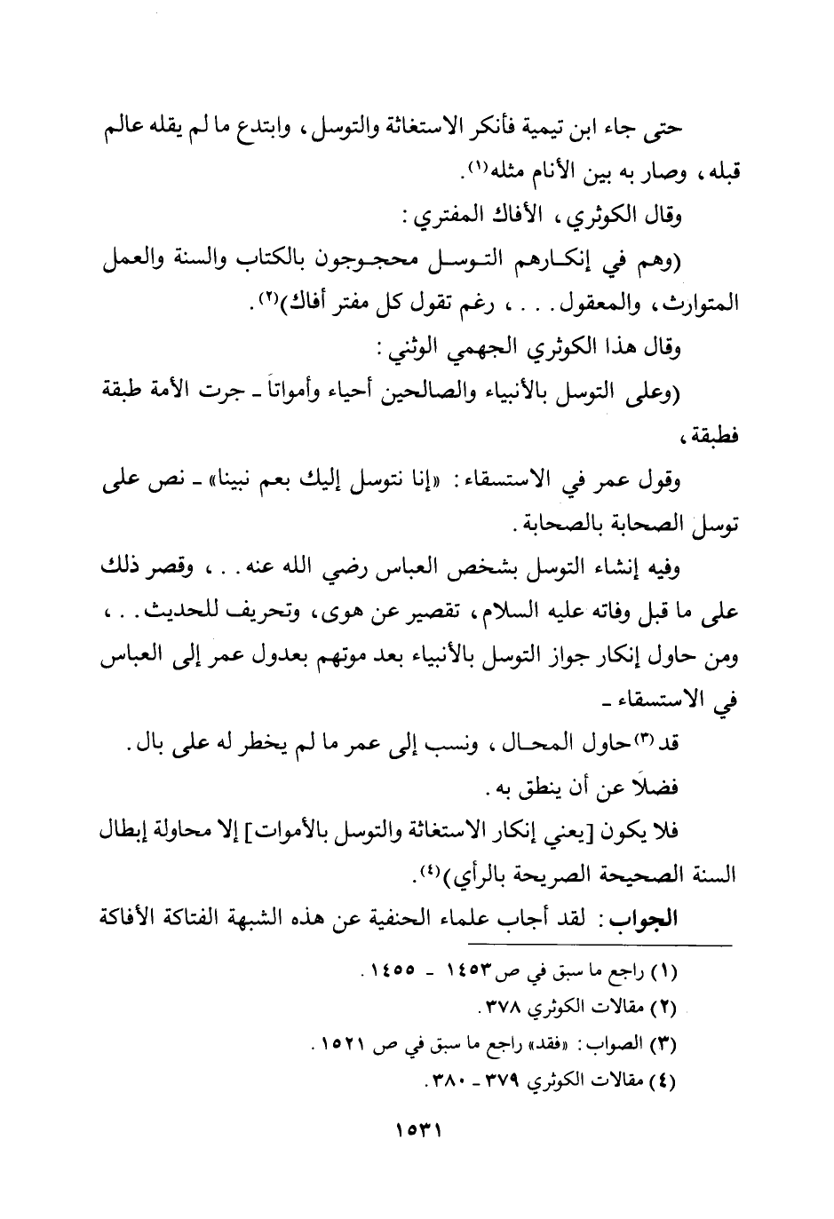 (وهم في إنكارهم التوسل محجوجون بالكتاب والسنة والعمل المتوارث، والمعقول ... ، رغم تقول كل مفتر أفاك) .