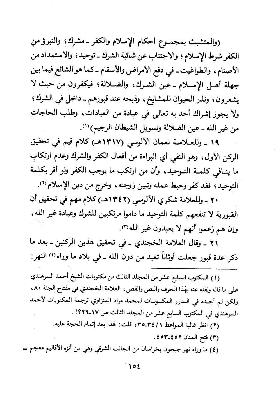 20 - وللعلامة شكري الآلوسي (1342هـ) كلام مهم في تحقيق أن القبورية لا تنفعهم كلمة التوحيد ما داموا مرتكبين للشرك وعبادة غير الله، وإن هم زعموا أنهم لا يعبدون غير الله.