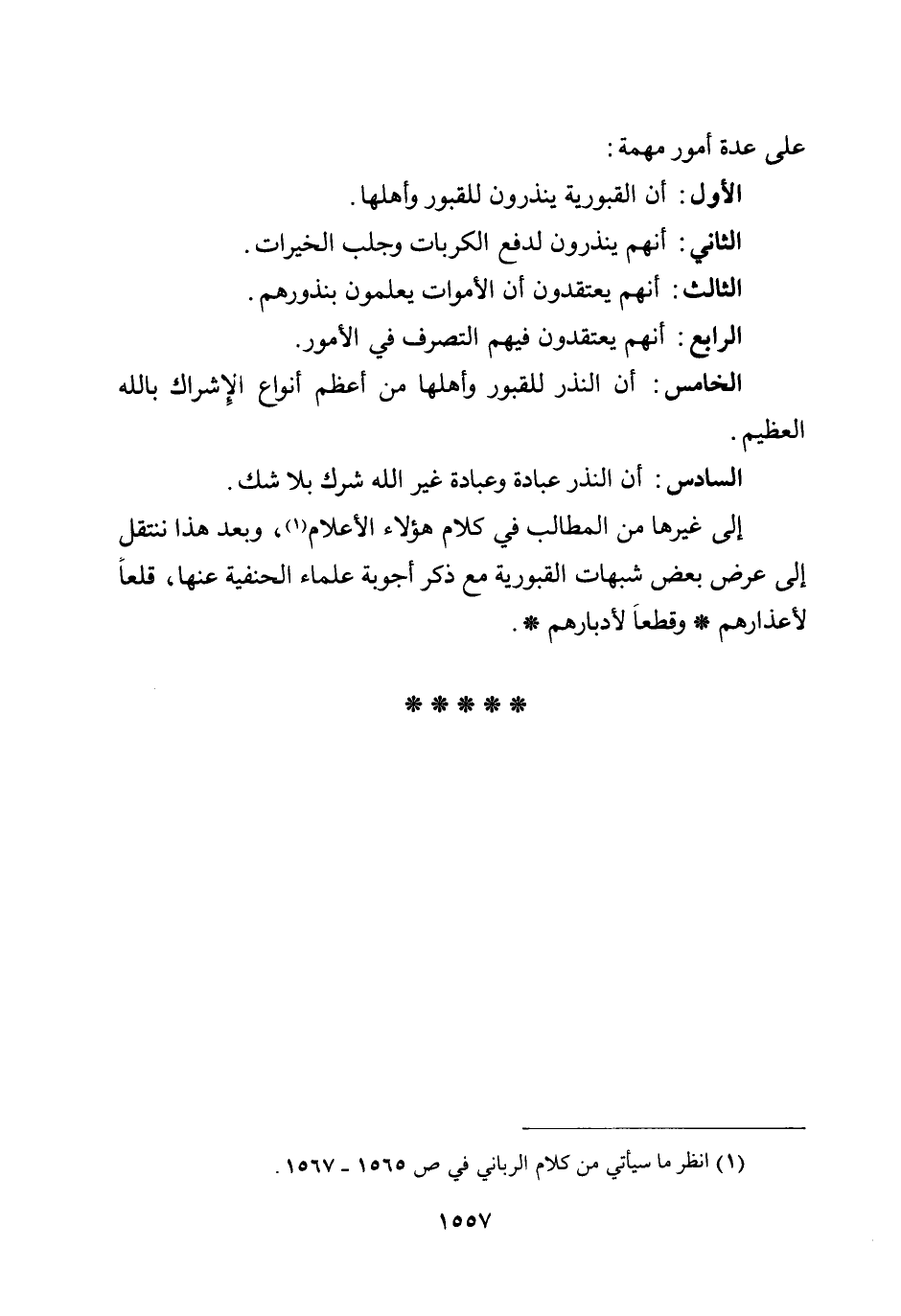 الخامس: أن النذر للقبور وأهلها من أعظم أنواع الإشراك بالله العظيم.