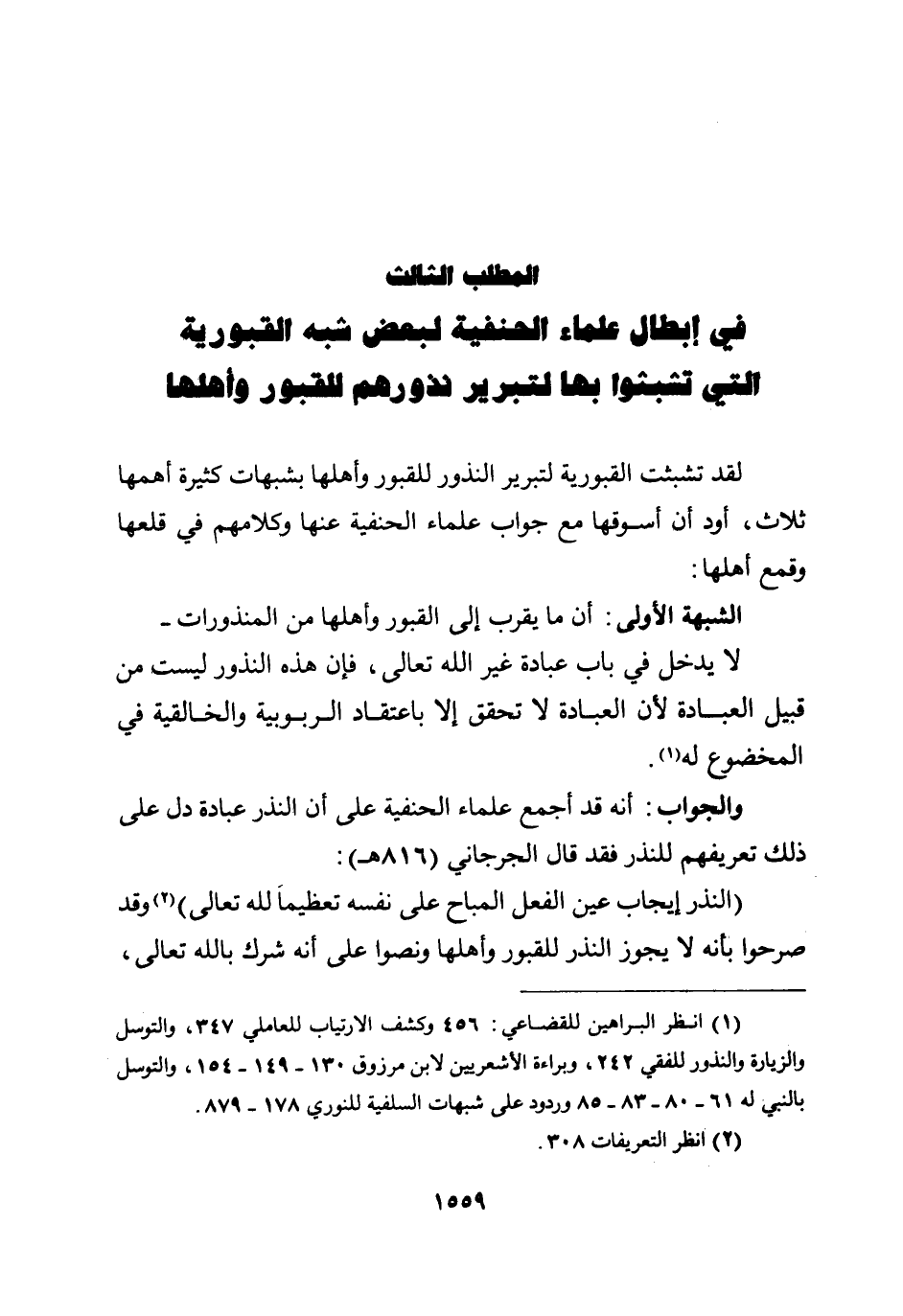 لقد تشبثت القبورية لتبرير النذور للقبور وأهلها بشبهات كثيرة أهمها ثلاث، أود أن أسوقها مع جواب علماء الحنفية عنها وكلامهم في قلعها وقمع أهلها: