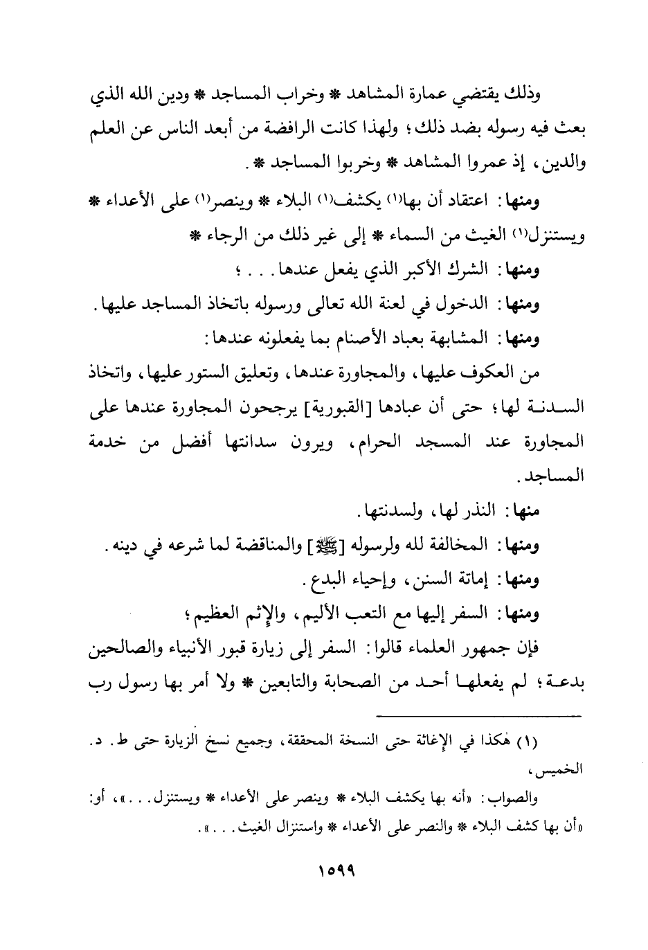 ومنها: اعتقاد أن بها يكشف البلاء * وينصر على الأعداء * ويستنزل الغيث من السماء * إلى غير ذلك من الرجاء *.
