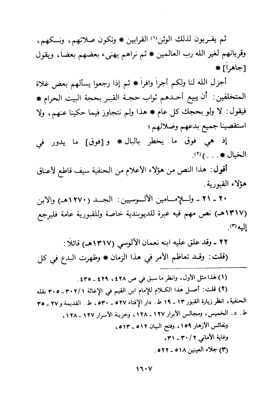 20 -21- وللإمامين الآلوسيين: الجد (1270هـ) والابن (1317هـ) نص مهم فيه عبرة للديوبندية خاصة وللقبورية عامة فليرجع إليه.